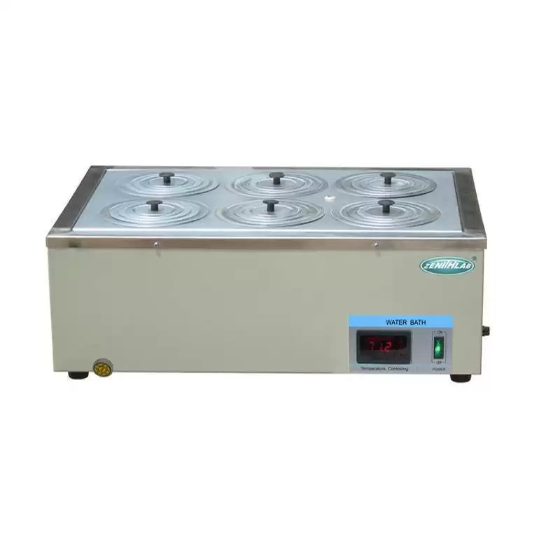 The 6-hole digital water bath provides increased capacity for simultaneous sample heating while maintaining stable temperature control. Its robust construction and user-friendly digital interface make it suitable for routine laboratory operations.