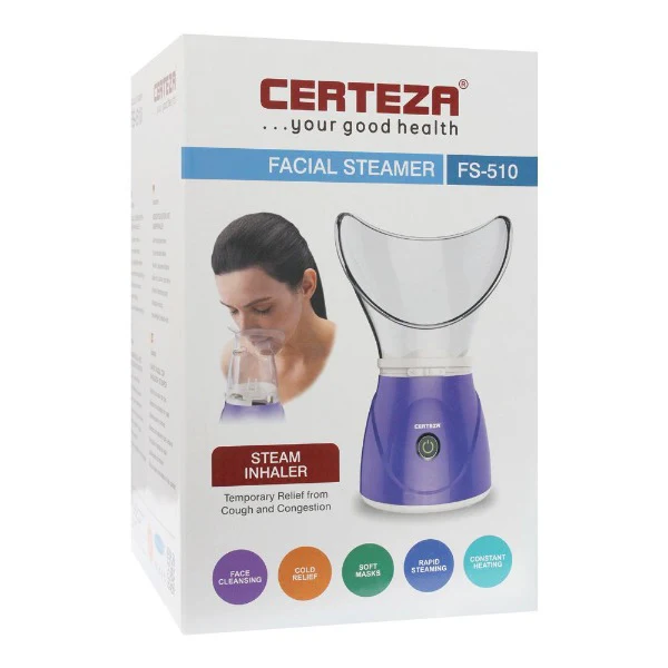 The Certeza FS510 Facial Steamer is designed to provide deep facial steaming for skincare and respiratory comfort. It helps open pores, cleanse skin, and promote circulation, making it suitable for personal care and cosmetic applications.