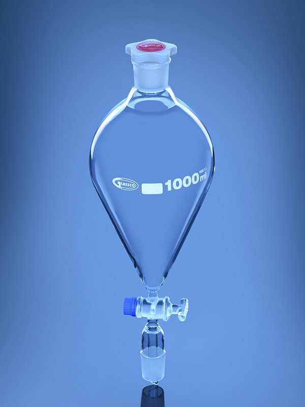 Separating Funnel, Pear Shape with Stem Inside Cone, Solid Glass Stopcock – Glassco